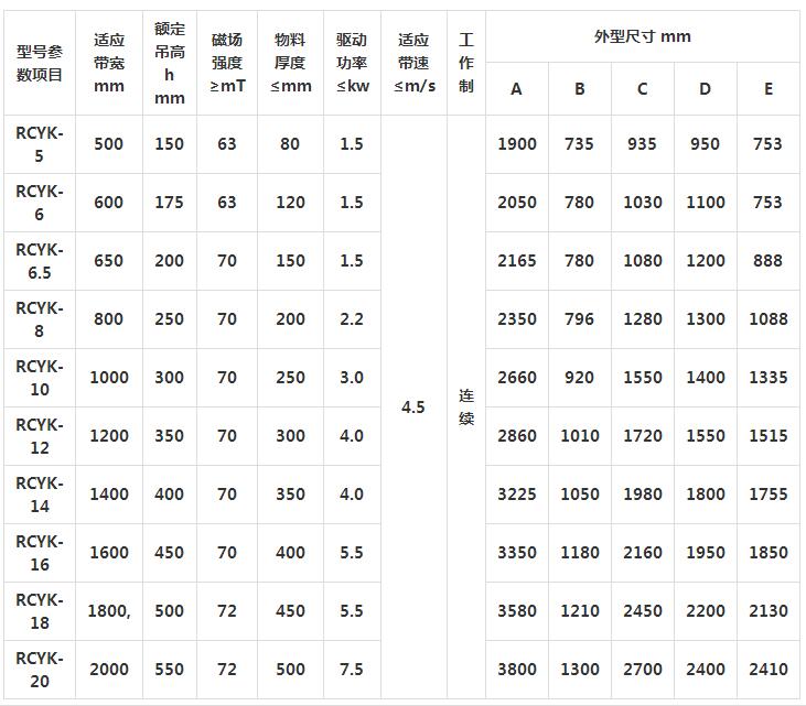 注:各型號都有高于國標的特強型T1、T2和T3產(chǎn)品設計,額定吊高處磁場強度分別為:90mt、120mt、150mt。