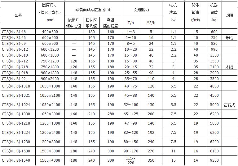 注:本型號磁選機有濃縮型(脫水型)可調(diào)節(jié)二三段磨礦濃度、滿足用戶對鐵精粉品質(zhì)的更高需求。磁場強度可根據(jù)用戶需求在1500gs-10000gs之間特殊定做,桶表可做耐磨處理,請在簽訂合同時注明。